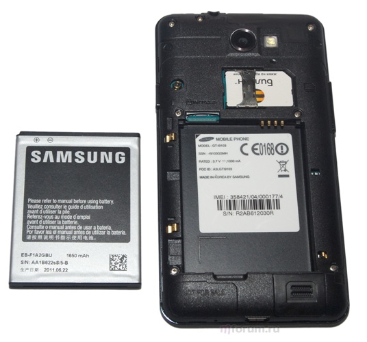 В смартфоне используется литий-ионовая батарея емкостью 1650 мАч. По данным производителя, полного заряда аккумулятора должно хватить на 620 часов в режиме ожидания и 9 часов в режиме разговора. На практике эти цифры подтвердились. Возможно, дело в обещанной оптимизации Android 2.3.4 или более продуманной работы с ресурсами (в частности, двухъядерным процессором). Я пользовался телефоном с включенным WiFi и максимальной яркостью экрана. При этом слушал музыку или смотрел видео около 2-х часов, разговаривал примерно 20-30 минут в день. При такой нагрузке аккумулятор разряжался к утру второго дня использования телефона. Конечно, это не рекордные показатели, но на день уверенной работы Galaxy R хватало точно.