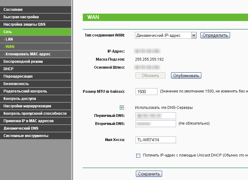 В случае если используется ADSL-модем (со встроенным DHCP-сервером) или провайдер выдает IP-адреса в автоматическом режиме какие-либо дополнительные настройки WAN-не требуются, а достаточно выбрать в выпадающем списке «Тип соединения WAN» значение «Динамический IP-адрес». В остальных случаях для уточнения настроек понадобиться обратиться к техническом формуляру (странице договора с интернет-провайдером, где указаны технические данные подключения), текущим настройкам подключенного к интернету компьютеру или позвонить в справочную службу провайдера. Также доступна функция автоматического определения сетевых настроек, для чего служит кнопка «Определить». Основная рекомендация – без необходимости какие-либо изменения на этой вкладке вносить не следует. Далее проверяют работоспособность Internet-соединения на компьютере, подключенном к маршрутизатору проводной сетью.