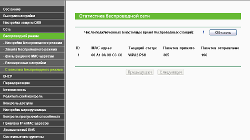 Просмотреть список абонентских устройств подключенных к точке доступа можно через пункт меню «Статистика беспроводного режима»