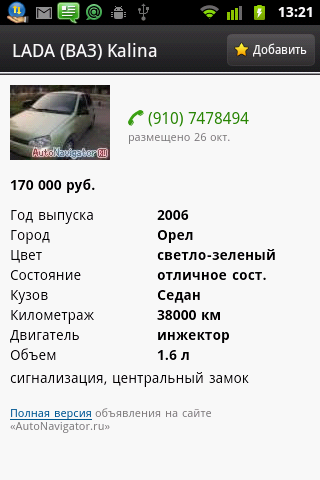 Следующее приложение также разработано программистами Яндекса, а его целевая аудитория – те, кто хочет купить автомобиль. База данных приложения – объявления с автомобильных сайтов, при этом доступен поиск по цене, году выпуска, модели, типу кузова и целому ряду других параметров. Также приложением поддерживаются списки «избранных» сайтов и возможность позвонить по объявлению не выходя из приложения.