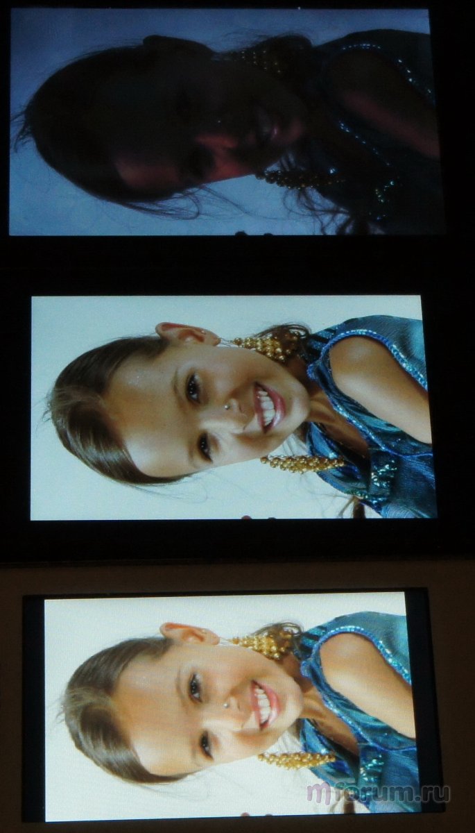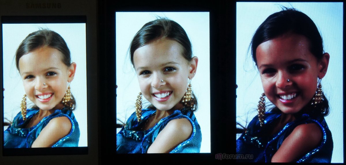 Углы обзора дисплея небольшие: под наклонами вправо цвета практически полностью инвертируются, влево – падает контрастность, вверх-вниз – слегка уменьшается яркость. Честно говоря, хотелось бы видеть в этом аппарате более качественный экран.