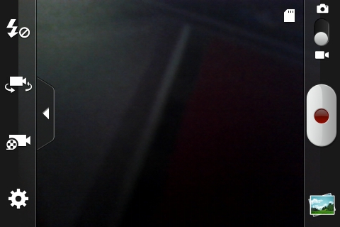 Интерфейс видеорежима: справа - переключение в фоторежим, активация затвора, вход в галерею; слева – режим записи (обычный и видео для MMS), переключение на фронтальную камеру, подсветка (включена или выключена), настройки.