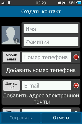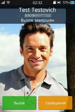 Для того чтобы запустить «Номеронабиратель», необходимо нажать на соответствующую иконку в нижней части экрана. При наборе номера отображается список абонентов, чей номер начинается с введенных цифр. Из «Номеронабирателя» можно попасть в «Записную книжку», «Лог звонков», в «Избранные» или в набор сообщений. Для запуска приложения «Контакты» нужно кликнуть по кнопке «Контакты» на дисплее. Откроется список абонентов, разделенный на «все контакты», «группы» и «избранные». Отобразится небольшой аватар абонента, его имя и фамилия, размещение (внутренняя память или SIM-карта). При осуществлении звонка или при его получении на дисплее в полный экран появятся фотография контакта, номер телефона и несколько кнопок: