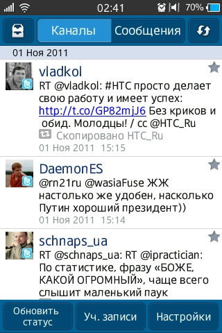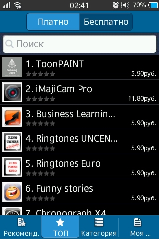 Ранее я уже сказал, что приложения от предыдущей версии ОС не подходят к новой. Сотрудники Samsung мне объяснили, что программы необходимо перекомпилировать, и в скором времени появится их большее количество. Приложения устанавливаются на карточку памяти (если она установлена в телефоне), поэтому будьте внимательны: при ее извлечении все установленные программы и игры (в том числе темы оформления) будут недоступны. В разделе «Память» есть возможность очистить как внутреннюю память, так и карту памяти.