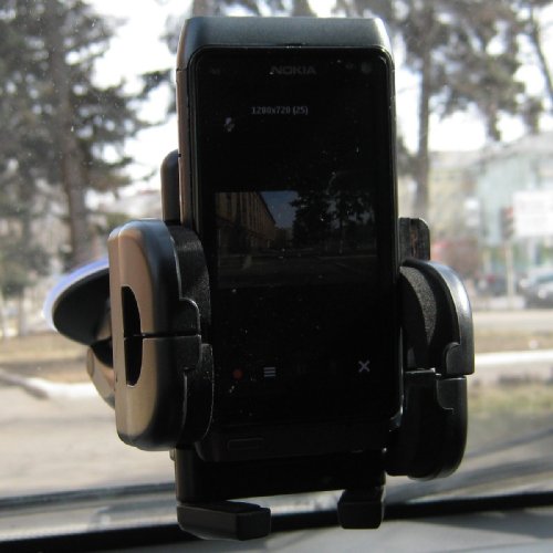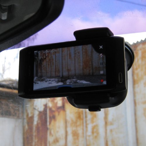Перед тем как переходить непосредственно к обзору приложения несколько слов о подготовительной части – ведь, в отличие от видеорегистраторов, в смартфонах не предусмотрена «присоска» для крепления на лобовое стекло. На практике проблема решается довольно просто – достаточно подобрать подходящий держатель и выбрать правильное место для его установки. Главное учитывать то, что держатель должен фиксировать телефон таким образом, чтобы камера телефона охватывала максимально возможный участок дороги. В моем случае подошел компактный держатель Nokia CR-115, разместившийся в районе крепления зеркала заднего вида. Другой вариант держателя для телефона предложен на сайте автора. Также, при активном использовании телефона в роли видеорегистратора, не лишним будет и автомобильное зарядное устройство.