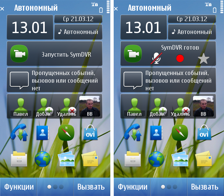 Особенность версии приложения для Symbian^3 – наличие виджета рабочего стола, посредством которого можно быстро перейти в приложение, запустить/остановить запись видео, отключить запись звука и занести записываемый ролик в «избранное».