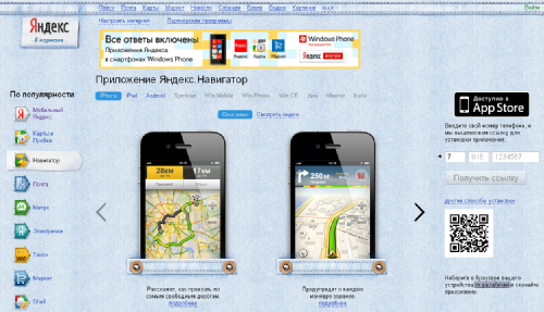 Компания Яндекс продвигает «Яндекс.Навигатор» под слоганами «расскажет, как проехать по самым свободным дорогам» и «предупредит о каждом манёвре заранее», а ключевые возможности этого приложения включают в себя: