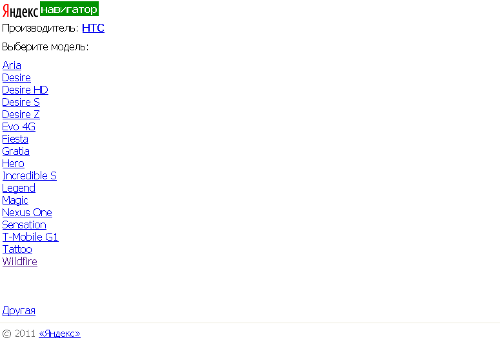 Кстати, с установкой «Яндекс.Навигатора» оказался связан один интересный момент. Изначально для теста приложения планировалось использовать HTC Wildfire. Однако попытка установки приложения через Play Market оказалась неудачной – «продукт не совместим с вашим устройством». В тоже время, если загрузить apk-файл (ссылка «загрузить установочный пакет») с сайта m.ya.ru/ynavi (выбрав нужную модель телефона), то приложение успешно устанавливается. Однако добиться нормальной работы «навигатора» на Wildfire так и не удалось (при запуске начинает мигать экран и программа уходит в глубокую задумчивость, а через какое-то время «вылетает»). Скорее всего, причина кроется в довольно медленной аппаратной платформе устройства.