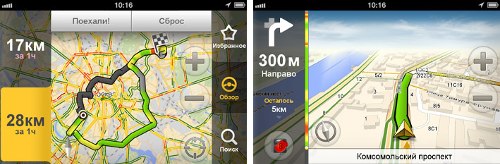 Еще один момент, присутствующий в «картах», но отсутствующий в «навигаторе» - возможность просмотра панорамных фото, что в незнакомым местах может серьезно помочь сориентироваться. Другое ограничение текущей версии «Яндекс.Навигатора» состоит в том, что он нацелен только на автомобильную навигацию, в том время как используя «Яндекс.Карты» можно проложить маршрут и с использованием общественного транспорта. Нет в «Яндекск.Навигаторе» и возможности голосового ввода конечной точки маршрута.