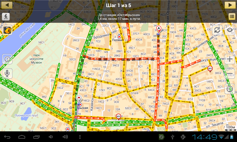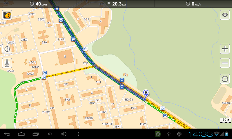 Как и у любой другой картографической программы, качество прокладки маршрута определяется детальностью карт и наличием информации об особенностях организации дорожного движения. Если говорить о результатах тестирования, то заданные мной маршруты «Яндекс.Навигатор» прокладывал вполне корректно, в то время как одного из моих знакомых он чуть не сделал пешеходом, предложив проехать под «кирпич». Кстати, в отзывах о «Яндекс.Навигаторе» в Google Play довольно часто упоминается о желании программы проложить маршрут по «встречке». Поэтому, полностью доверяться «Яндекс.Навигатору» (как и любой другой программе) все же не стоит.