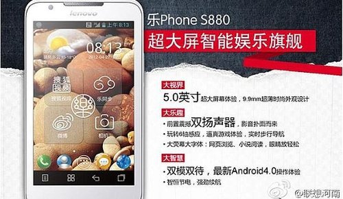 Производителем следующей новинки является китайская компания Lenovo, анонсировавшая LePhone S880. Уникальность этого устройства заключатся в том, что оно позиционируется как Android-планшет (диагональ дисплея – 5 дюймов, разрешение WVGA), но при этом LePhone S880 оснащен двумя SIM-слотами. Также спецификации новинки включают в себя 1-ядерный 1-гигагерцовый процессор MediaTek, 512 МБ оперативной, 4 ГБ встроенной памяти, аккумулятор емкостью 2250 мАч, 5 Мп камеру на задней панели и фронтальную камеру разрешением 0.3 Мп. ОС – Android 4.0. Толщина устройства 9,9 мм, вес – 200 г. Цена аппарата на внутреннем китайском рынке составит $345 (11,5 тыс. рублей).
