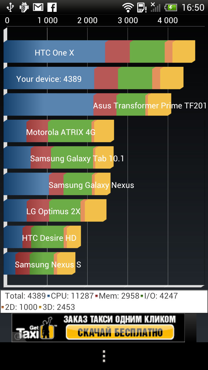 Смартфон HTC One X оснащен несъемной батареей емкостью 1800 мАч. Здесь мне видятся два минуса: батарея несъемная и не очень мощная. Ну, в самом деле, мне трудно понять компанию HTC – проблемы с низкой автономностью давно уже являются родовым признаком устройств под этой маркой. И вновь выходит флагманская трубка с большим экраном, с мощной платформой и всего 1800 мАч, которых при активном использовании (аудио, видео, голос, интернет, почта, игры) хватает на 4 часа. Куда это годится? Добавлю еще, что даже под минимально нагрузкой HTC One X очень здорово греется.