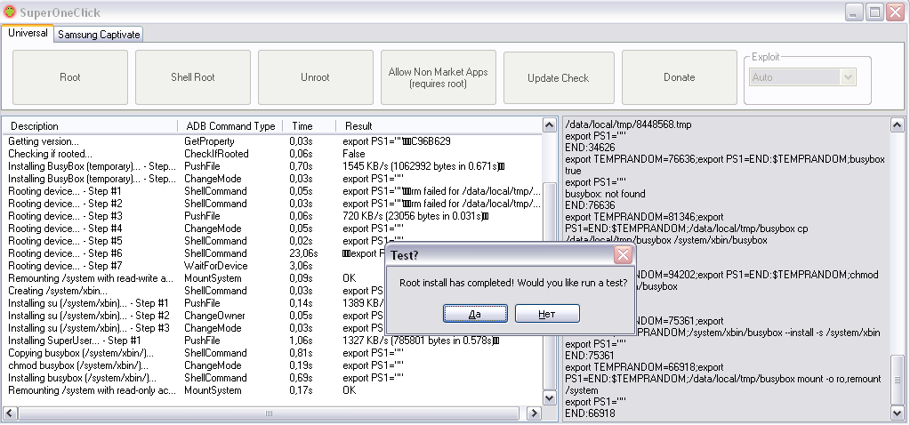 Для обновления Recovery может использоваться любой из перечисленных вариантов, так как эту операцию достаточно выполнить однократно. Для получения прав суперпользователя можно воспользоваться одним из соответствующих приложений. Например, SuperOneClick, представляющим собой довольно универсальное приложение, дающее возможность получить временные root-права на многих устройствах. Загрузить приложение можно, например, с сайта xda-developers. Обратите внимание – программы для получения root-доступа опознаются антивирусными программами как вредоносное ПО (что вполне логично, ведь они вносят уязвимости в ОС Android), поэтому для их использования антивирус придется отключить.