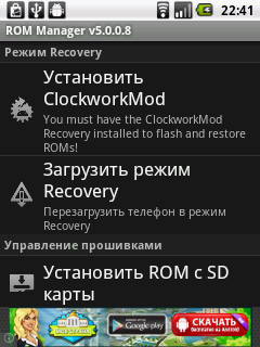 Обновление Recovery посредством ROM Manager осуществляется следующим образом: