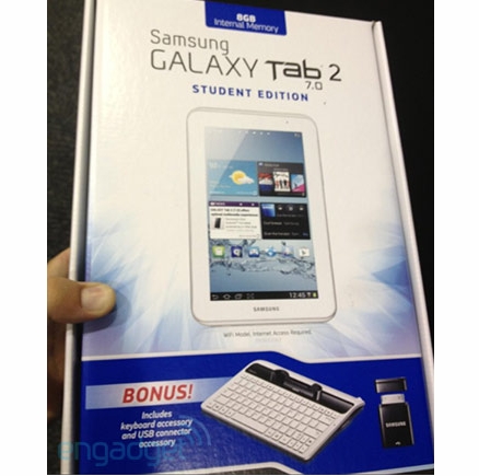 Также в этом месяце (19 августа) начнутся продажи Samsung Galaxy Tab 2 7.0 Student Edition. Изначально планшет появится на американском рынке, а основное отличие от обычного Samsung Galaxy Tab 2 7.0 заключается в наличии дока для клавиатуры и коннектора USB для подключения периферийных устройств. Цена устройства останется на прежнем уровне – $249 (8 тыс. руб.). Напомню, программная основа устройства – Android 4.0 Ice Cream Sandwich, а его аппаратная часть включает в себя 7-дюймовый дисплей разрешением 1024x600 точек, модули Wi-Fi и GPS, поддержку Bluetooth 3.0, 3.2 Мп камеру, фронтальную VGA-камеру, 2-ядерный 1 ГГц процессор, 1 ГБ оперативной и 8 ГБ встроенной памяти.