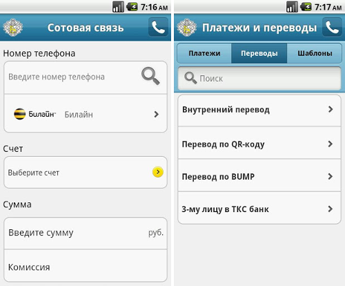 Есть мобильный клиент и у «Тинькофф Кредитные Системы». Для авторизации в приложении используются логин/пароль для входа в web-версию интерфейса. Функционал приложения включает в себя: