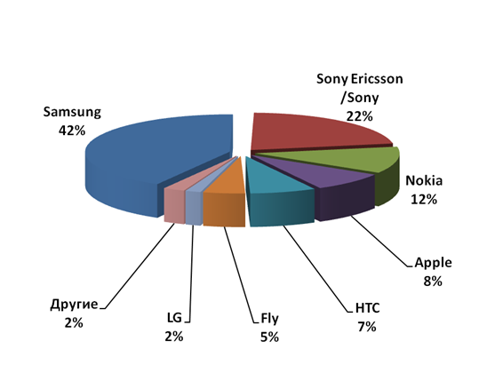 Бессменный лидер рынка – подразделение по производству мобильных устройств южнокорейского электронного гиганта Samsung (42%; -1%). Показатели слегка упали, однако это не угрожает положению компании. На второй позиции прочно закрепился недавний аутсайдер с новым лицом – альянс старых смартфонов Sony Ericsson и новых Sony, который за счёт последних улучшает свои позиции (модельный ряд этого года оказался довольно удачным) – Sony + Sony Ericsson (22%; +7%).