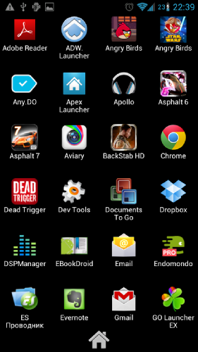 Изначально появился лаунчер Go Launcher, в дальнейшем вышла его улучшенная версия с “индексом” EX. А версия ADW и вовсе стала фрагментом штатного лаунчера для устройств под Android 4.0+.