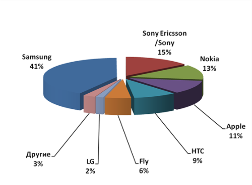 Три самых популярных телефона от лидера рынка остались прежними: Samsung GT-S6102 Galaxy Y Duos, Samsung GT-S5230 Star, Samsung GT-S6802 Galaxy Ace Duos с почти не изменившимся суммарным результатом – 26% (-0.3%).