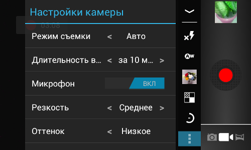Видимо в связи с вышеупомянутой особенностью, настроек для камеры очень