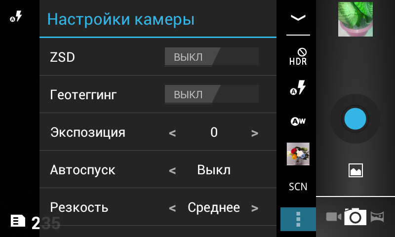 Настройки фотокамеры: