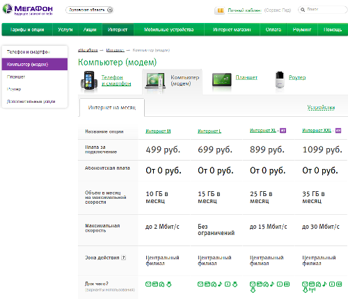 Тарифы на LTE-интернет от МегаФон-Центр в Орловской области