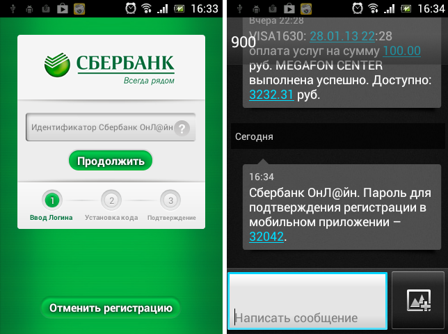 Первый шаг регистрации – ввода логина, используемого для входа в web-версию «Сбербанк ОнЛ@йн». Получить логин/пароль для входа в web-версию «Сбербанк ОнЛ@йн» можно посредством банкоматов Сбербанка. После ввода логина на номер мобильного телефона, подключенного к услуге «Мобильный банк», поступит sms-сообщение с кодом авторизации приложения.