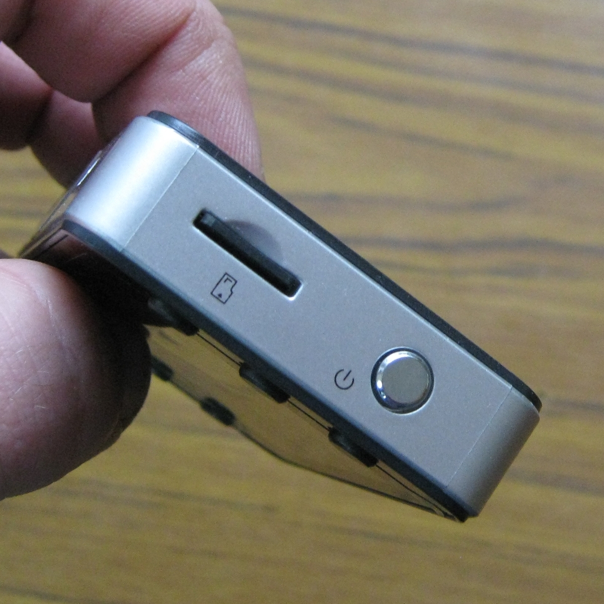 Кнопка включения (она же используется для управления подсветкой) размещена на левом торце (если смотреть на регистратор со стороны объектива). Там же находится слот для карты памяти. В какой-то мере это может показаться спорным решением, но если регистратор частично скрывается за салонным зеркалом, то пользоваться кнопкой находящейся слева удобнее. Впрочем, при обычной эксплуатации устройства прибегать помощи кнопок и вообще не требуется – при подключенном зарядном устройстве запись начинается автоматически при подаче питания.
