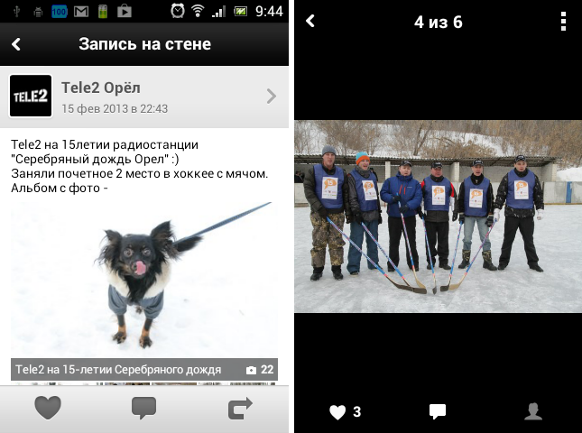 Кроме того, просматриваемую запись можно отметить как нравящуюся, прокомментировать и опубликовать на своей странице. Довольно удобен и просмотрщик фотографий.