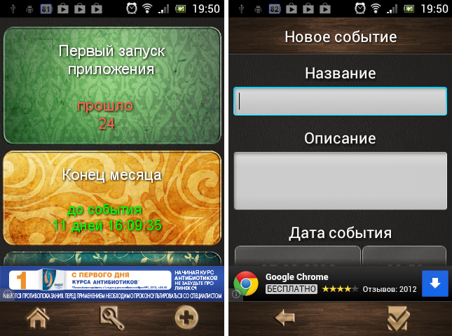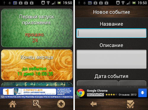 Кстати, у этого же разработчика в активе есть и еще одно интересное приложение – «Отсчет календаря», позволяющее узнать точное время, прошедшее с того или иного события. Для каждого из отображаемых событий можно задать не только дату и время, но цвет фона и шрифт.