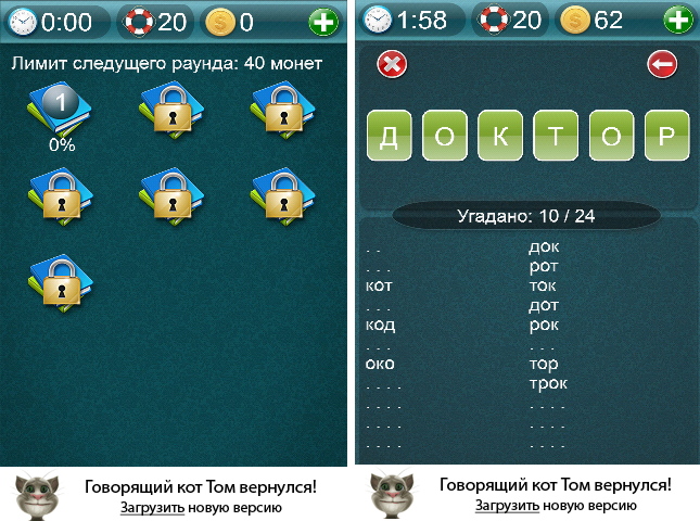 Заставляет напрячь мозг и следующая программа – «Эрудит: Слова из слова». Игровой процесс приложения сводится к составлению новых слов из заданного.
