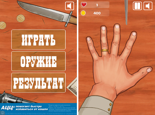 «Дикий ножик» – еще одна игра с обилием крови. Но в отличие от предыдущей, в «Диком ножике» появление крови на экране – это признак поражения. Главное – не пытайтесь повторять подобные вещи в реальной жизни – без определенной сноровки это очень опасно.