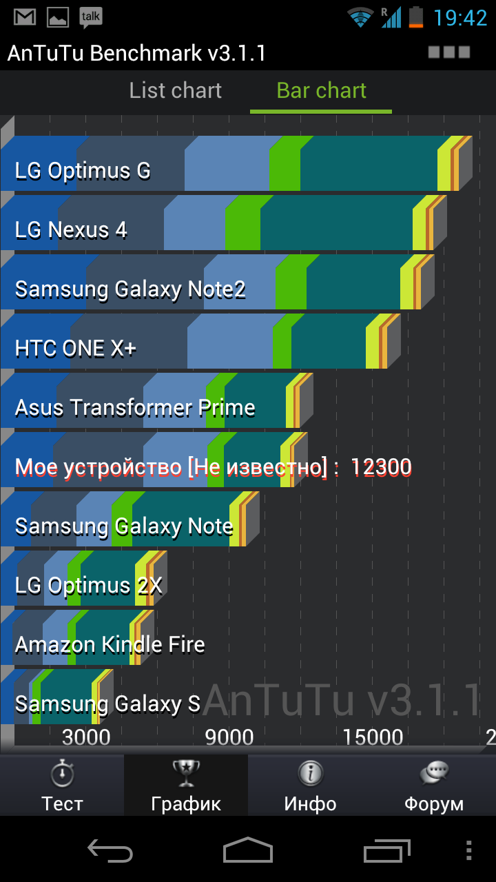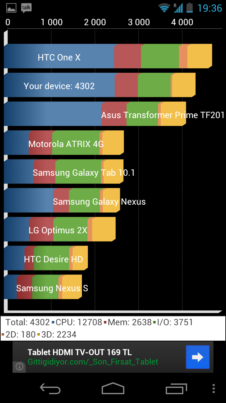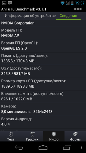 Устройство получилось более чем шустрое, в частности синтетические тесты демонстрируют результаты, сопоставимые с прошлогодним флагманом компании HTC - One X. Это и неудивительно, ибо платформа в этих устройствах была использована одна.