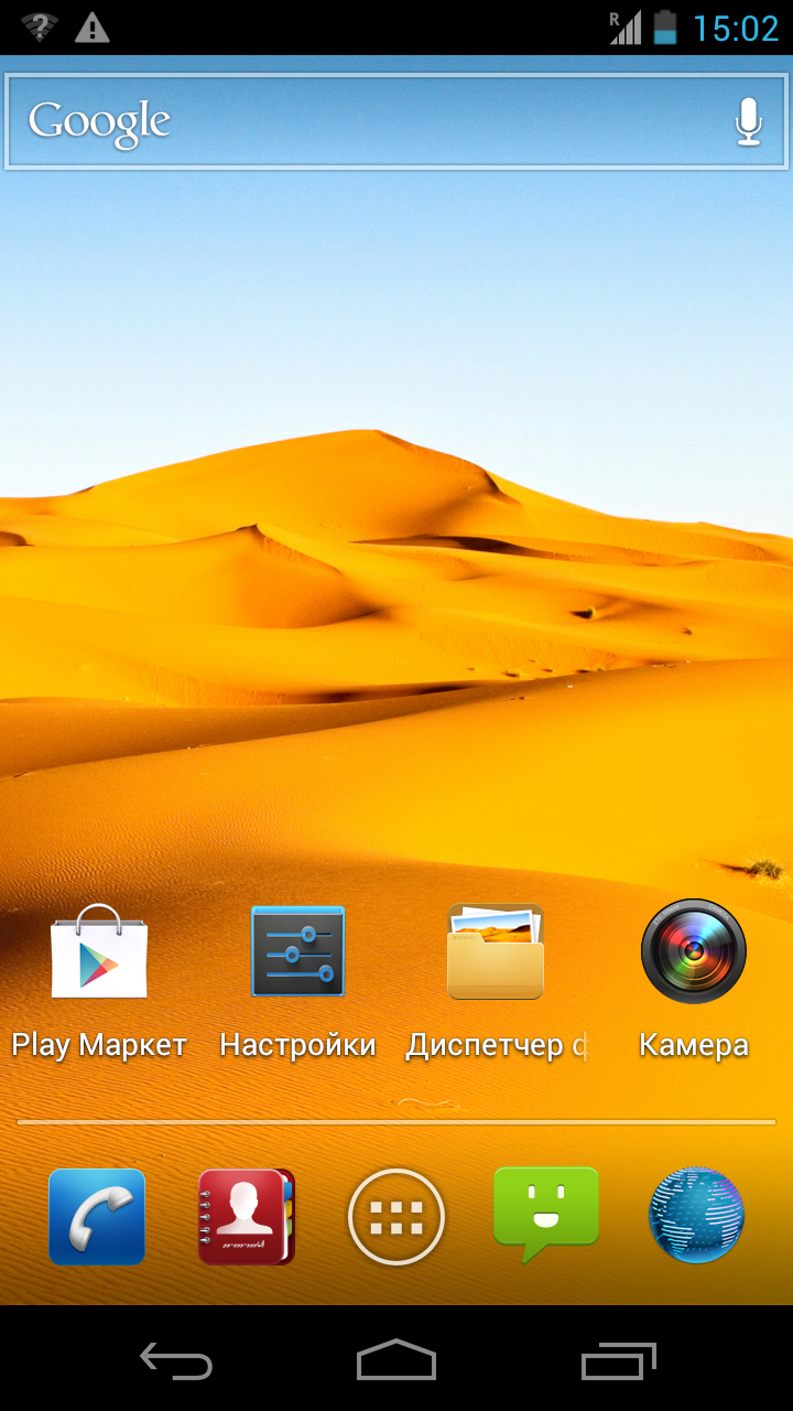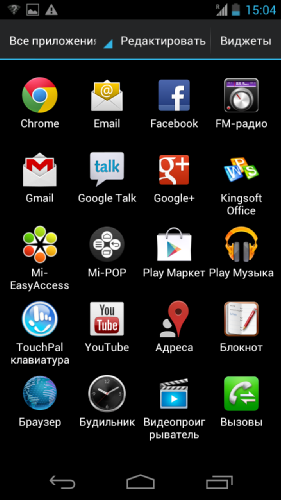 В принципе интерфейс смартфона практически ничем не отличается от базового Android 4.0. Отмечу самые важные особенности.
