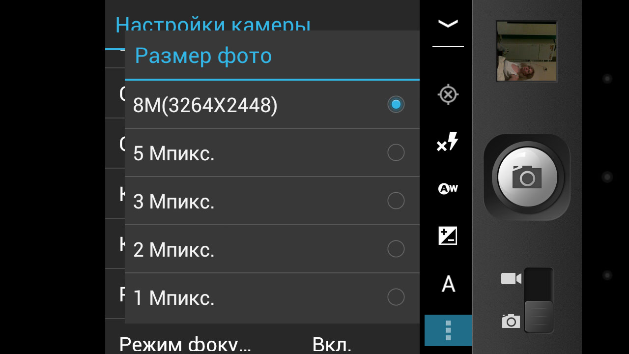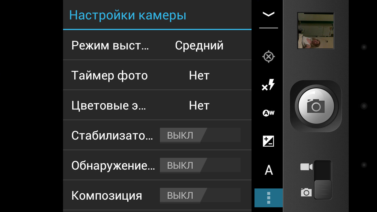 Разработчик обошелся без аппаратной кнопки запуска камеры на корпусе, из меню камера запускается примерно за 2 секунды, что не очень быстро. Максимальное разрешение при фотосъемке - 3264х2448 пикселей, съемка видео возможна с качеством до 1080p. Отмечу, что камера умеет работать в режиме HDR.