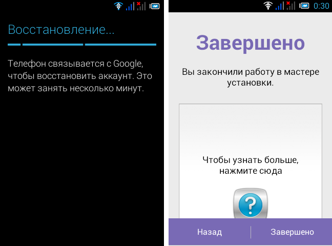 По завершению загрузки программного обеспечения: отключают телефон от компьютера, включают стандартным образом, дожидаются окончания загрузки, после чего следуют подсказкам «Мастера настройки»