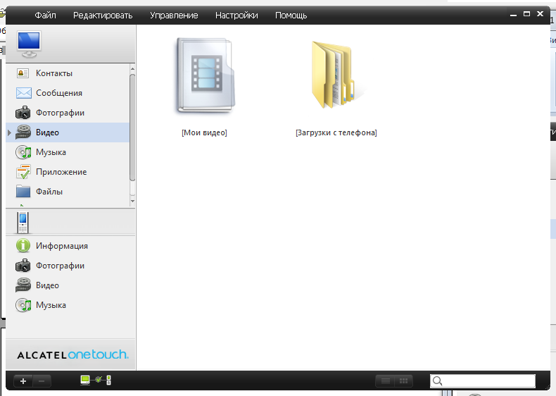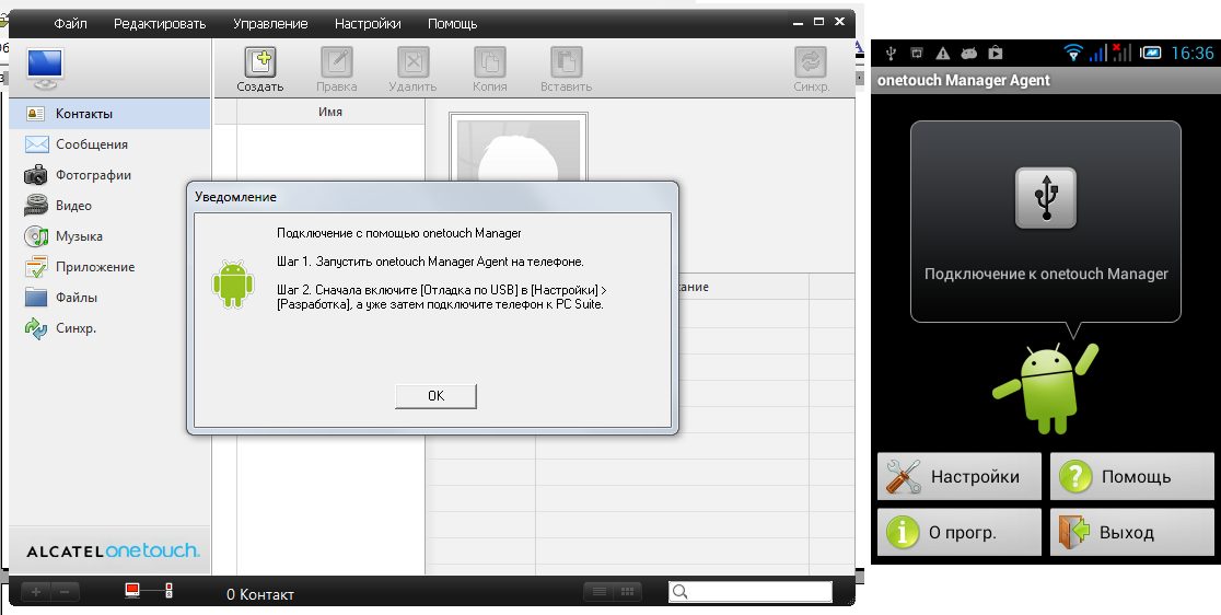 Основным средством сопряжения смартфонов Alcatel с компьютером является приложение One Touch Manager, для работы с которым на смартфоне установлена программа OneTouch Manager Agent. Кроме того, понадобится включить режим «Отладка по USB».