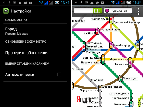 Программа «Яндекс.Метро» предназначена для поиска оптимального маршрута поездки из точки А в точку Б на метро. Список городов невелик – Москва, Санкт-Петербург, Киев, Харьков и Минск, а выбор используемой карты осуществляется через меню настроек приложения. Там же можно проверить наличие обновлений схем метро. Использование самой программы элементарно – выбираем исходную и конечную станции, после чего смотрим доступные варианты маршрутов. Из плюсов программы отметим поддержку «избранного» и возможность просмотра предыдущих запросов.