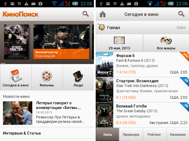 Следующее приложение также поможет в поисках. С помощью программы «КиноПоиск» можно быстро узнать подробную информацию о любом фильме или актёре. Также в приложение интегрированы: