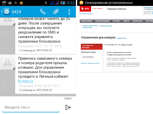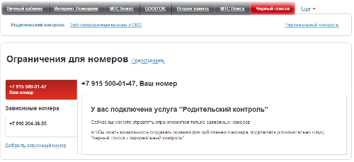Более того, в отличие от стандартного варианта «Черного списка», ребенок самостоятельно отключить услугу не сможет – отключение услуги «Черный список (ребенок)» возможно только в офисах МТС по заявлению родителя, на которого зарегистрирован номер телефона ребенка. Подключение и отключение услуг осуществляется бесплатно. Также не взимается плата за услугу «Черный список (родитель)», а стоимость услуги «Черный список (ребенок)» составляет 1,5 рубля в сутки. Из нюансов отметим, что номера телефонов ребенка и родителя должны быть оформлены на одно физическое лицо. Максимально один «родитель» может подключить до 10 номеров «детей». Услуга «Черный список (родитель)» доступна абонентам сети МТС Россия (физическим лицам) на всех тарифных планах, а услуга «Черный список (ребенок)» - на всех тарифах, за исключением тарифных планов линеек «МТС Коннект», «Онлайнер», «МТС iPad» и корпоративных тарифов.