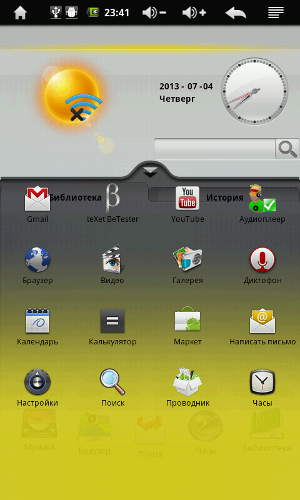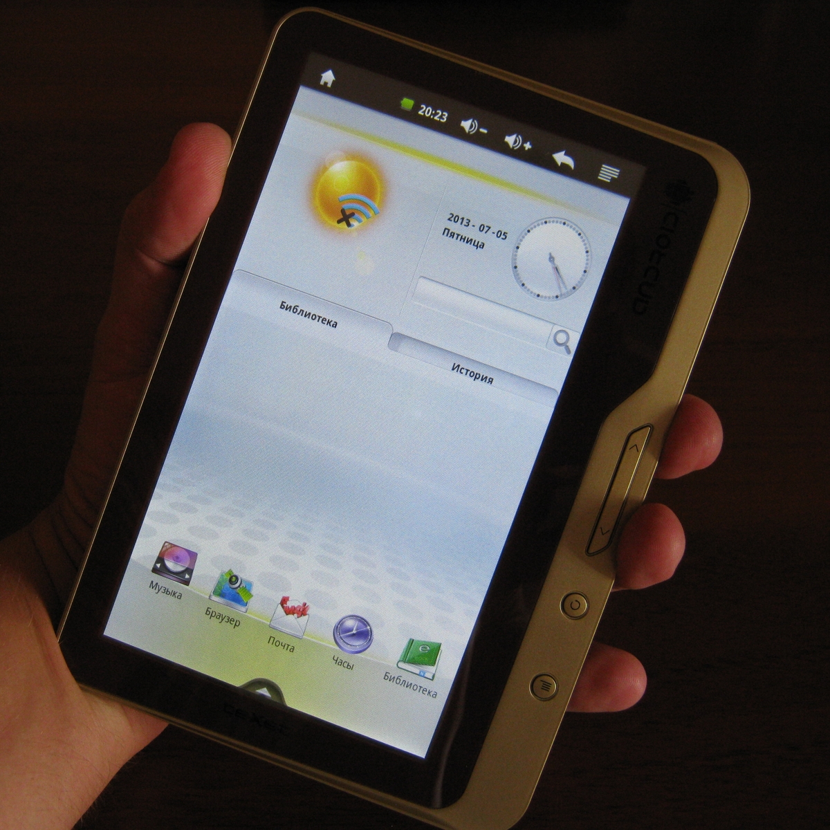 Как и герой этой статьи, Wexler Book T7006 работает под управлением ОС Android 2.2.1, оснащен резистивным дисплеем и построен на базе RockChip RK2818. Особенностью девайса является то, что в нем из коробки доступно две оболочки – фирменная Wexler Launcher с «книжной полкой» и стандартная с «планшетным» интерфейсом. Цена порядка 2 тысяч рублей.
