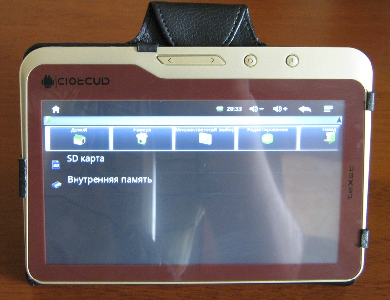 В отличие от планшетных компьютеров, в электронных книгах с TFT-дисплеями качественные матрицы встречаются довольно редко. Не стал исключением и TeXet TB-711A – небольшой запас яркости и полная невидимость изображения на солнце. Так что о чтении на пляже придется забыть (субъективно, для этой цели лучше всего подходят ридеры с e-ink экранами). А вот в помещении дисплей TeXet TB-711A можно назвать вполне приемлемым. Что интересно, углы обзора самой дисплейной матрицы неплохие, но все портит сенсорная панель, заметно ухудшающая видимость изображения под углом.