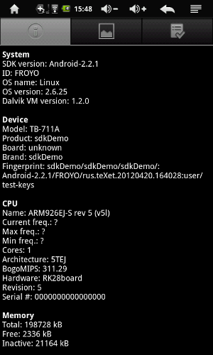 Основа аппаратной платформы TeXet TB-711A – система-на-чипе RockChip RK2818, работающий на частоте 600 МГц. Напомню, это одноядерный процессор на базе архитектуры RISC 32bit CPU Core ARM9 с поддержкой инструкций ARMv5 и памяти DDR II, которой в TB-711A всего 256 Мб. Также в активе RockChip RK2818 присутствует аппаратный декодер видео, что позволяет устройствам на его основе справляться с HD-видео 720p. Выпускается RK2818 по нормам 65 нм техпроцесса. Референсная версия операционной системы – Android 2.2. Одним словом, по меркам планшетов «железо» очень слабое. Но, по классификации RockChip данный процессор относится к группе E-book Solutions. Впрочем, для чтения – его ресурсов вполне достаточно.