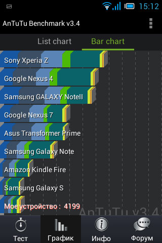 Неплохая, проверенная временем платформа для недорогого смартфона. Работу процессора поддерживают 512 МБ оперативной памяти. В системе установлено 4 ГБ памяти для хранения данных, из которых доступно примерно 1,4 ГБ, так что карта памяти абсолютно необходима. Система работает стабильно, способна проигрывать специально сконвертированное для мобильных устройств видео. За время тестирования глюков и зависаний замечено не было.