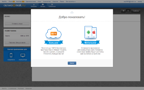 Началось бета-тестирование облачного сервиса «Облака Mail.Ru», доступного по адресу cloud.mail.ru. Причем, участники тестирования могут бесплатно получить до 100 Гб «облачного» пространства. Естественно, что мы не могли пройти мимо такого события и решили испытать новинку в деле.