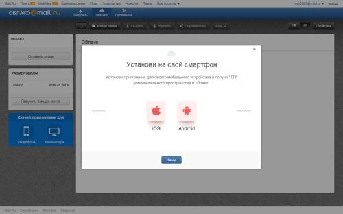 Папка «Облако Mai.Ru»