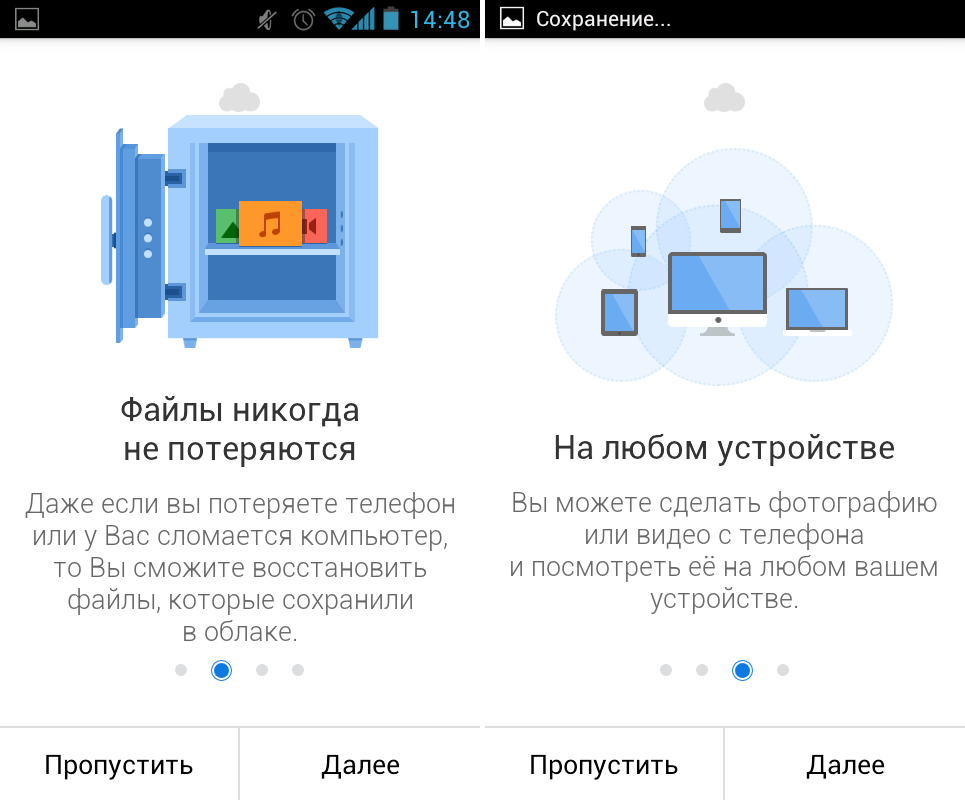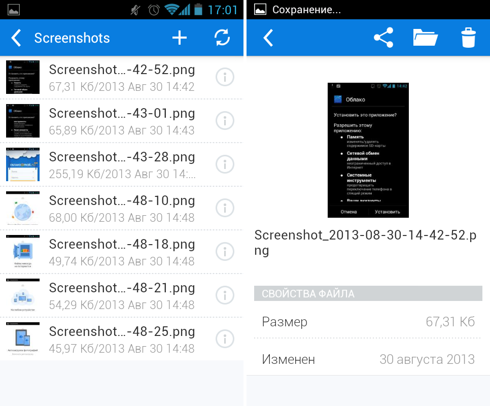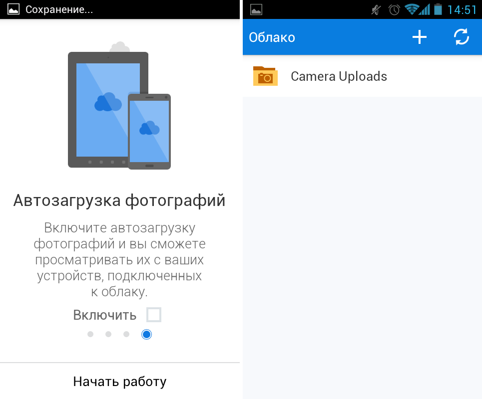 В установке и настройке мобильного приложения каких-либо сложностей нет – в соответствующих полях достаточно ввести логин/пароль от своей учетной записи Mail.ru и принять условия лицензионного соглашения. После авторизации на экране мобильного устройства будет показана краткая презентация возможностей сервиса и предложение включить автоматическую загрузку фотографий. Кстати, за это действие предоставляется 10 Гб места в облаке. И еще один очень приятный для меня момент – в отличие от Dropbox, «Облаке Mail.Ru» выгружаемые с телефона скриншоты размещаются в отдельной папке, на засоряя папку с фото. Очень полезная вещь, особенно для тех, кто часто делает снимки экрана мобильного устройства.