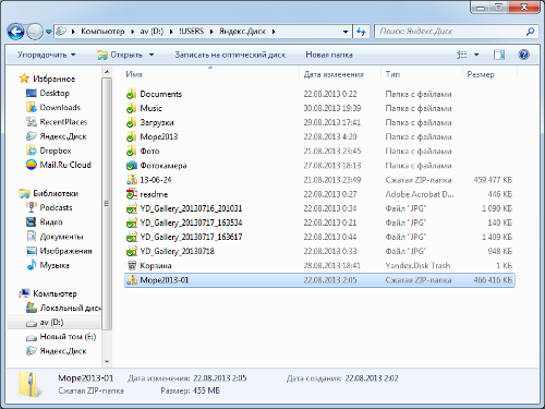 Папка «Яндекс.Диск»