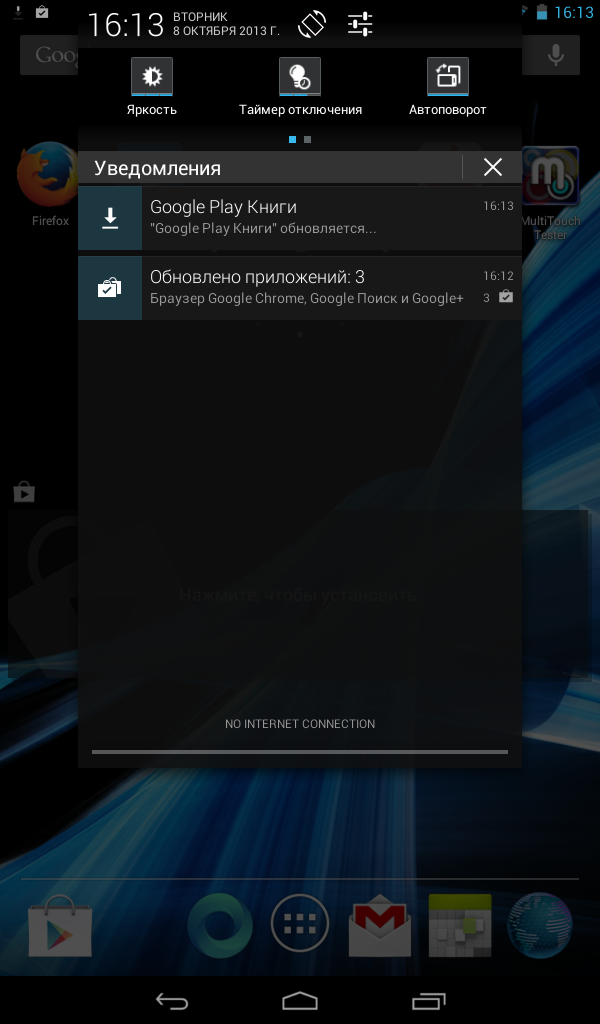 Регулировка яркости – только вручную, датчика освещенности в Iconia Tab B1-A71 не предусмотрено. С другой стороны – не будет повода жаловаться на его плохую работу. Для управления яркостью дисплея в панели инструментов строки уведомлений предусмотрена отдельная кнопка – при ее нажатии яркость регулируется ступенчато – минимальная, средняя, максимальная.