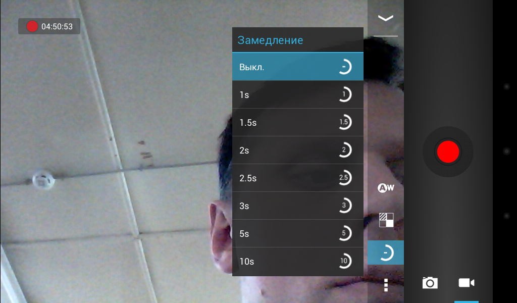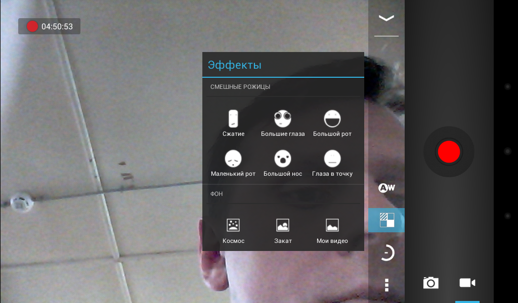 Есть и еще один не очень приятный нюанс – камера находится в углу планшета, поэтому при разговоре, чтобы собеседник видел ваше лицо, придется располагать планшет под определенным углом. Для фоторежима каких-либо настроек не предусмотрено, а в режиме видео можно задать баланс белого, выбрать эффекты и замедление. Впрочем, при таком качестве эти все настройки особой роли не играют.